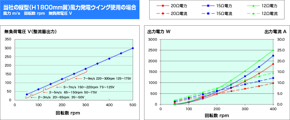 風速8mを直列仕様により送電電圧をDC680Vを出力。
